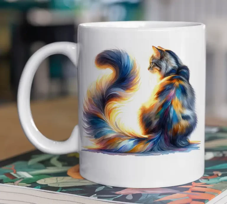 Дизайнът на предната част на тениската е вдъхновен от очарователния свят на котките и представя изящна и артистична илюстрация на котка. Детайлите са изпълнени с изключителна прецизност, а цветовете са избрани така, че да придават топлота и характер на изображението. Котката е уловена в игрива поза, което добавя още повече шарм към цялостния дизайн.