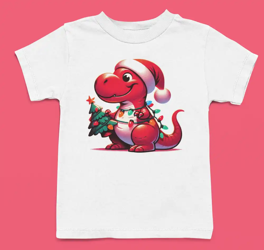 детска тениска коледен динозавър 4 – Открийте уникалния стил на вашето дете с нашата уникална детска тениска! Идеална за всеки повод!