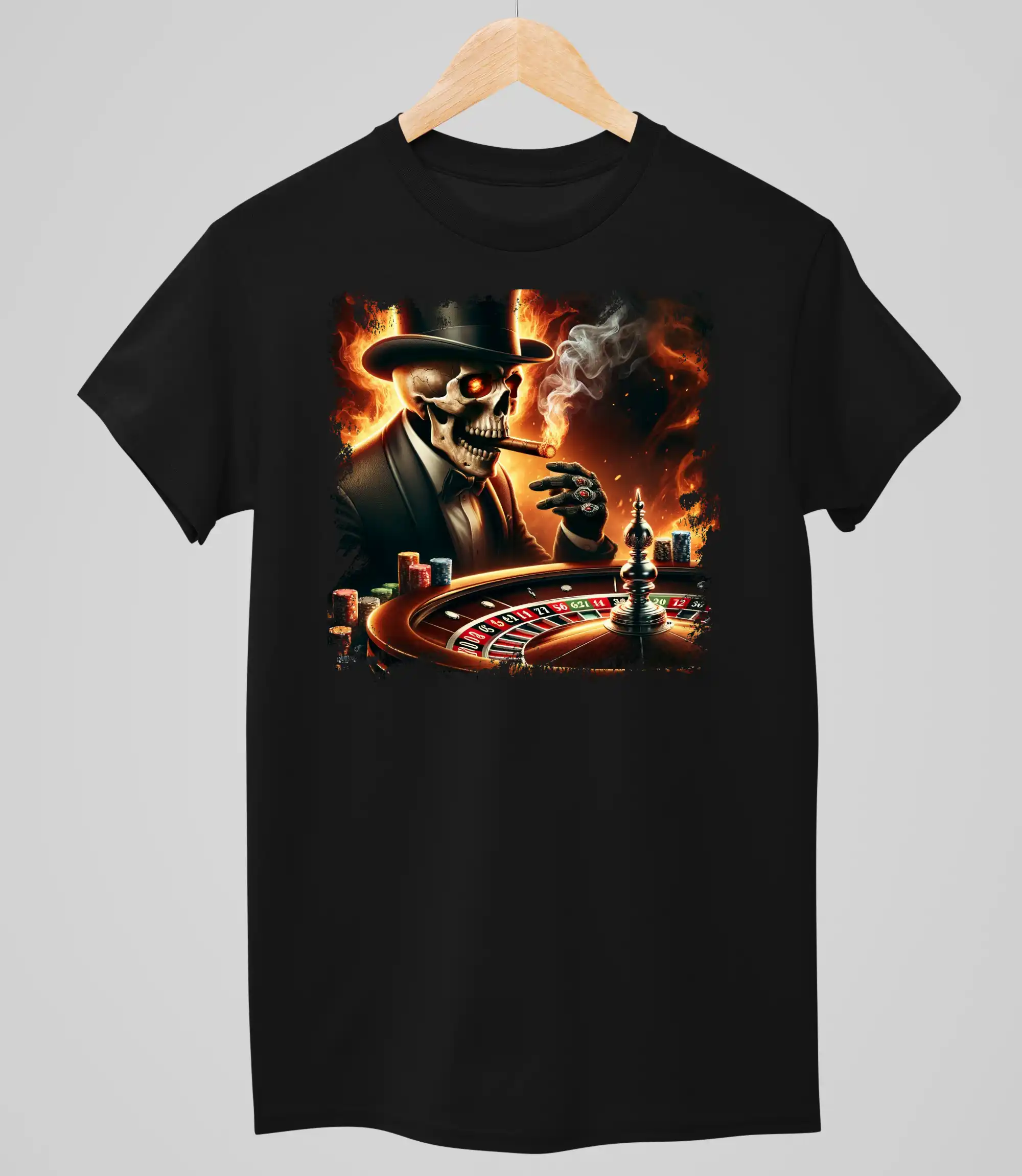 Открийте уникалния стил и комфорт с нашата тениска карти и черепи 11, проектирана да добави елегантност и индивидуалност към вашия ежедневен гардероб. Създадена от 100% висококачествен памук, тази тениска обещава несравним комфорт и мекота, които ще оцените от първия момент, в който я облечете.