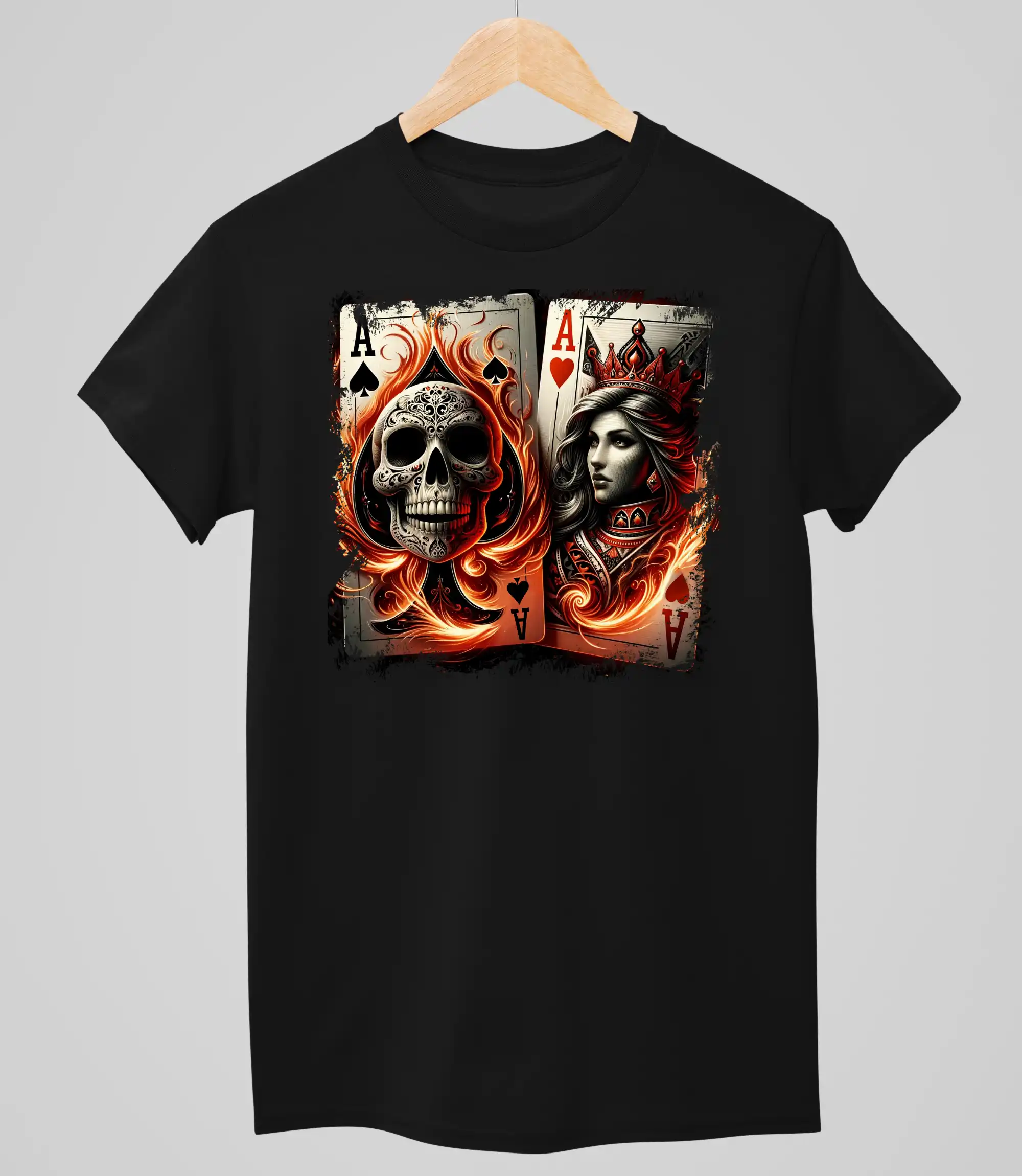 Разгледайте нашата уникална тениска карти и черепи 19! Изработена от висококачествени материали за комфорт и стил, тя е идеалният избор за всякакви поводи.