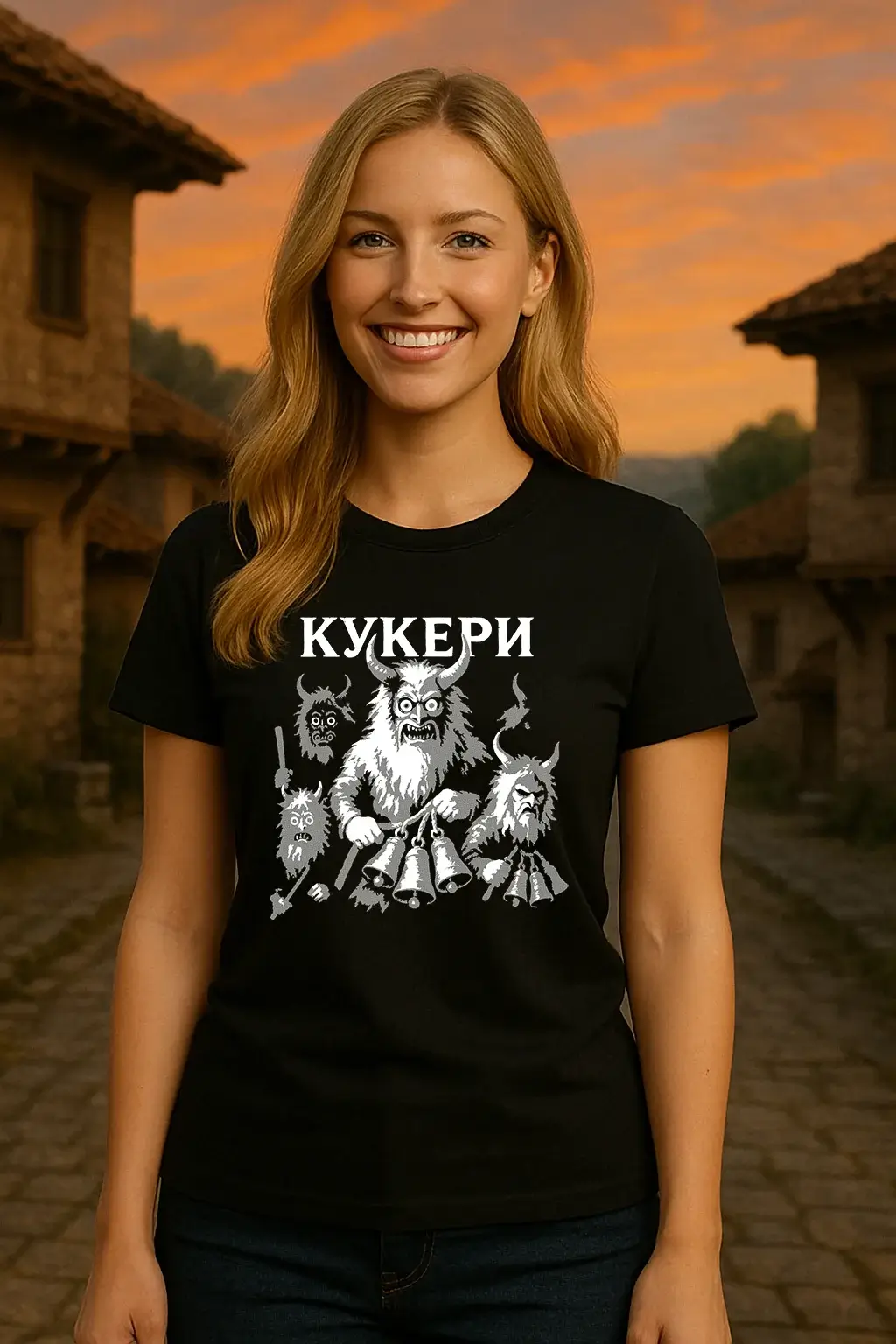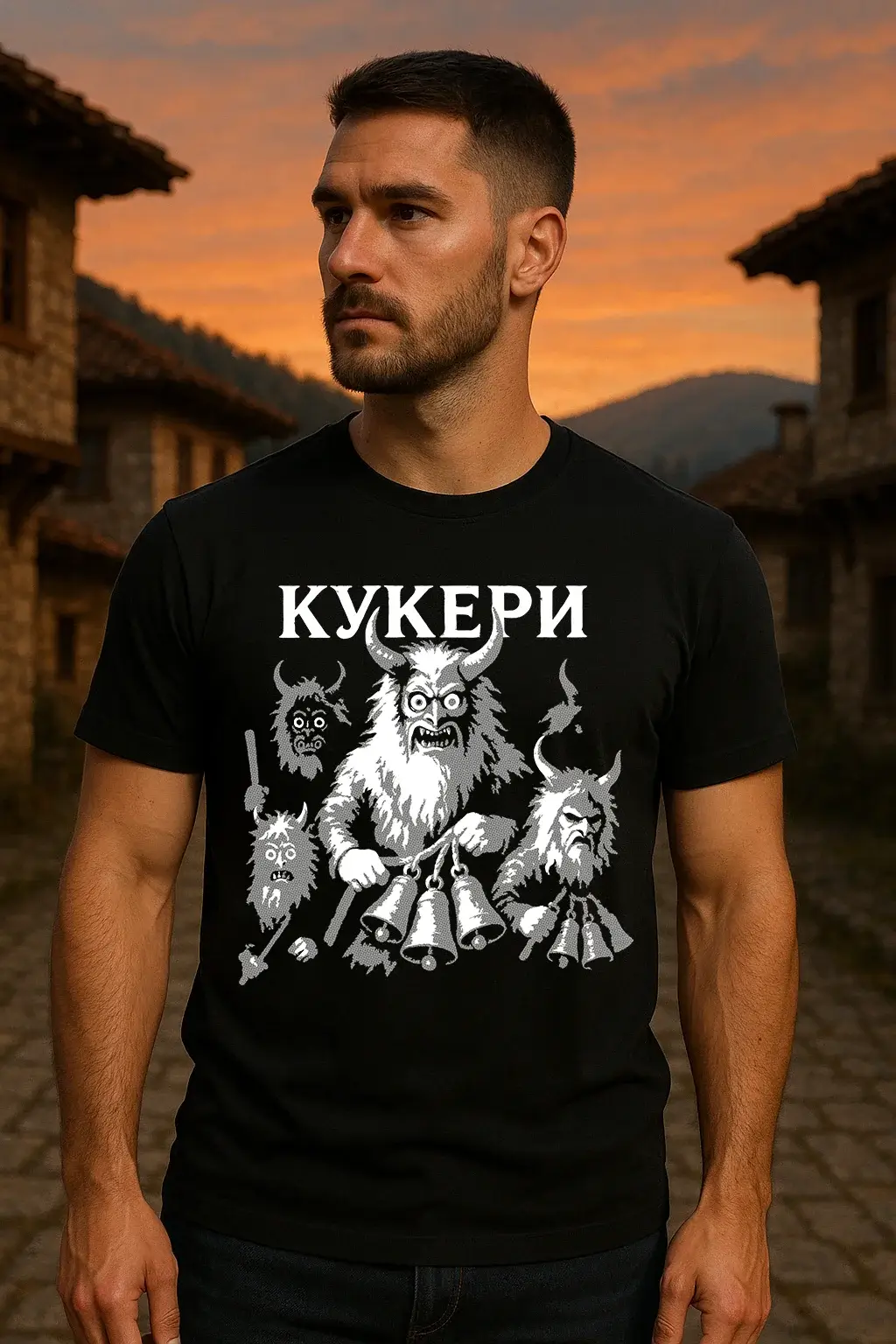Кукерите са живо въплъщение на българските вярвания – герои, които прогонват злите сили и носят надежда за плодородие и благоденствие. Белият цвят тук е не само визуално въздействащ, но и натоварен със символика: светлина, защита и ново начало. С тази тениска не просто носиш дреха, а заявяваш връзка с корените си.