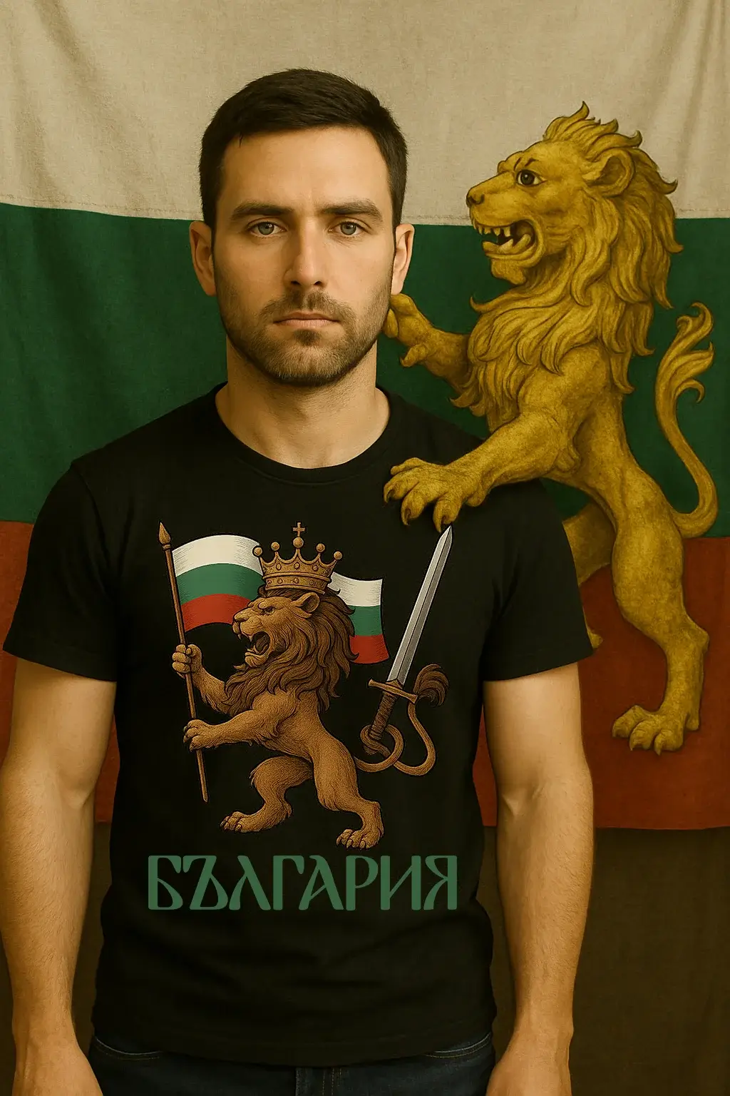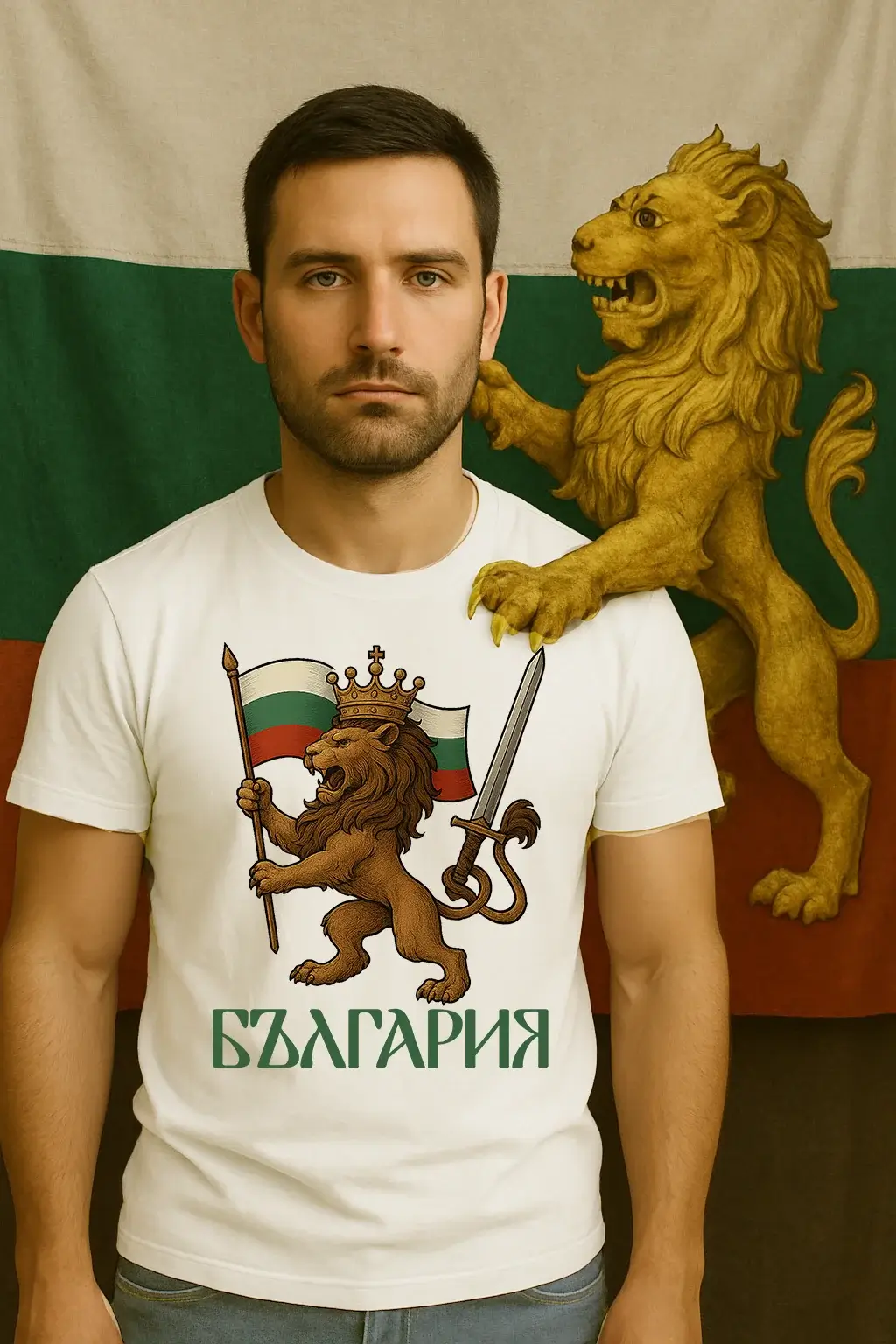Покажи гордостта си с тази патриотична тениска с български лъв. Дизайнът е вдъхновен от историческите символи на България. Централно място заема коронясаният лъв – държащ меч и знаме. Той символизира сила, чест и свобода.