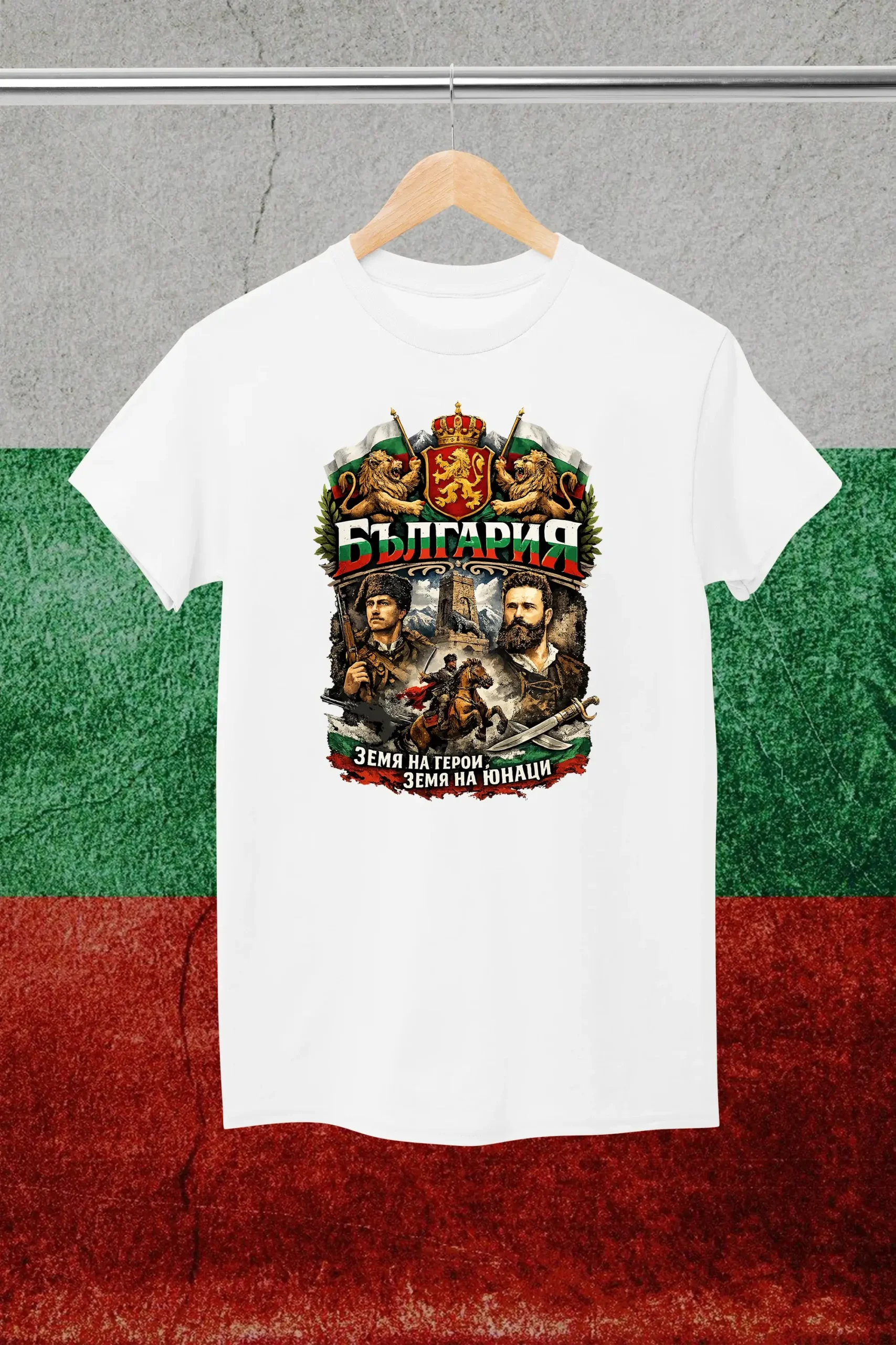 Надписът „Земя на герои, земя на юнаци“ не е просто текст – това е заявка за дух, памет и чест. Дизайнът напомня кои сме и откъде идваме, и носи усещане за единство, сила и достойнство.