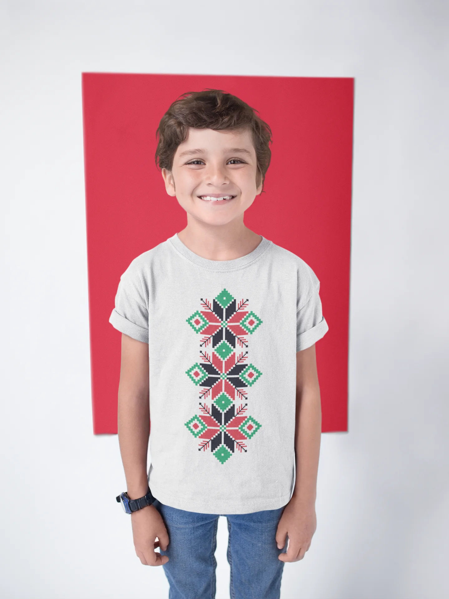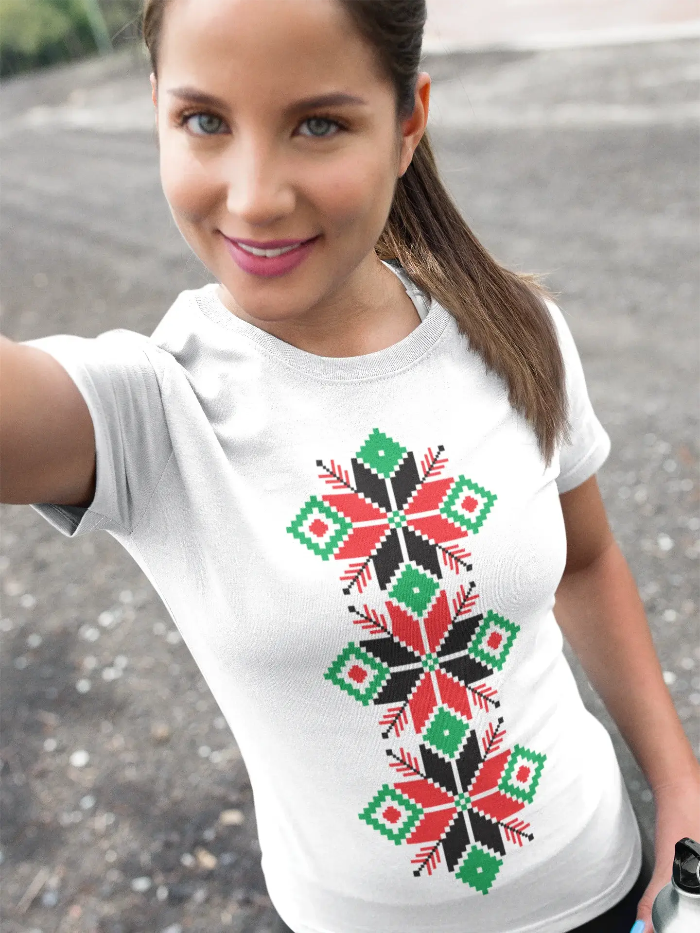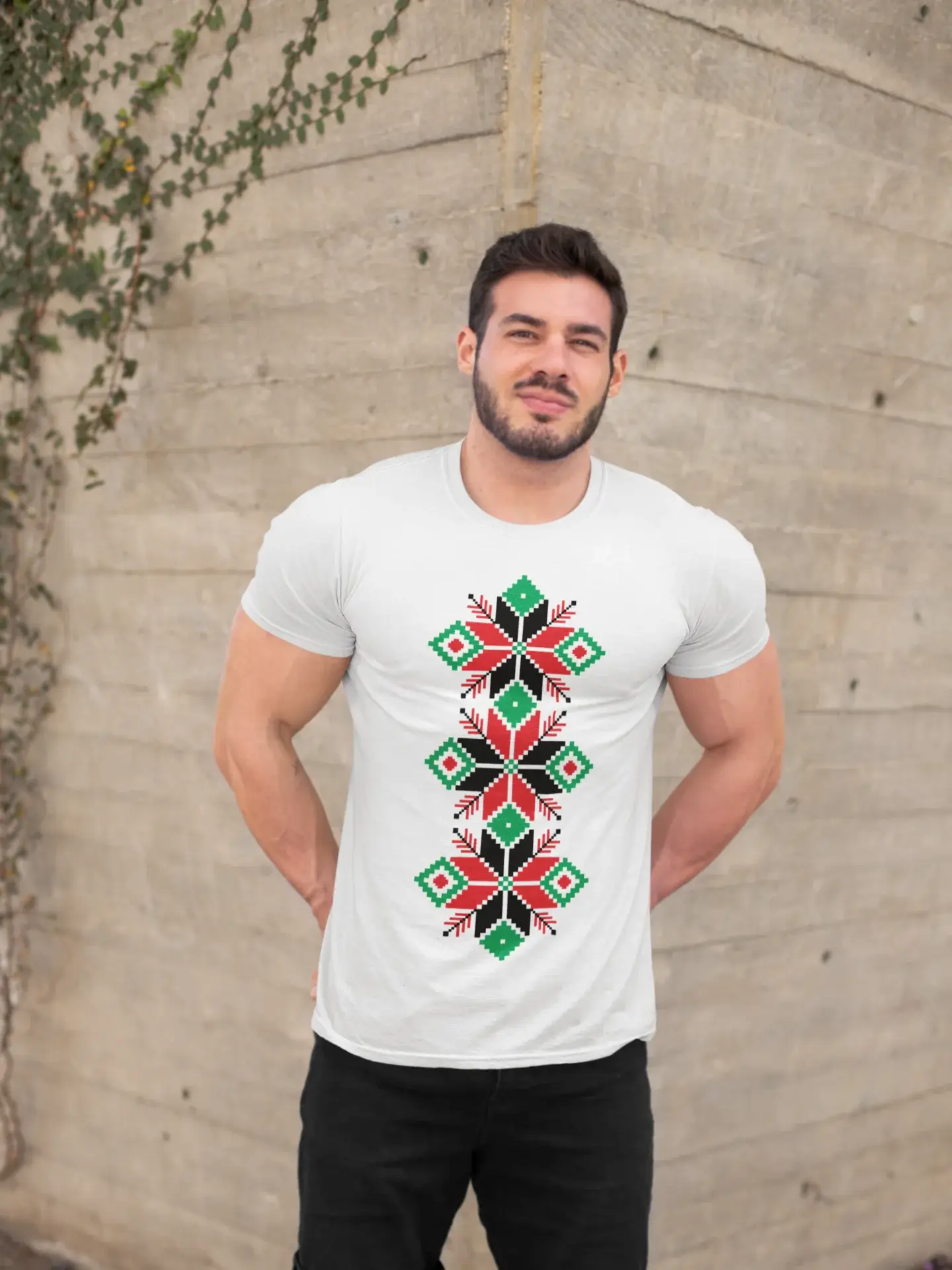 Тениска „Елбетица 1“ с традиционна българска шевица – символ на хармония и защита. 100% памук, издръжлив DTF печат. Носете българските корени със стил!