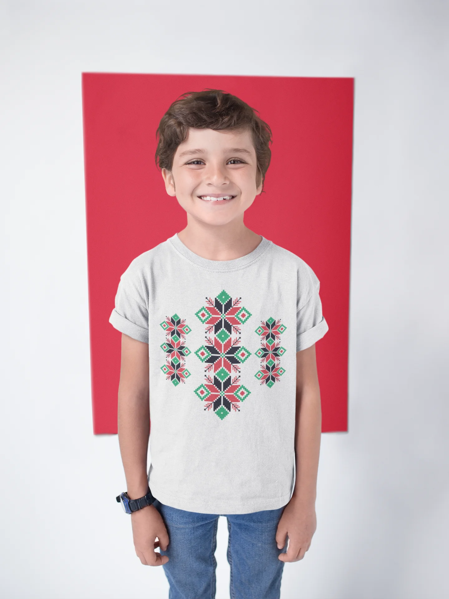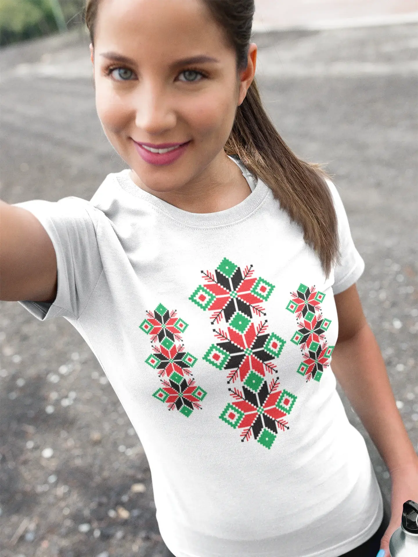 Тази тениска с автентична българска шевица „Елбетица“ е символ на хармония, защита и енергия. Елбетицата е един от най-древните мотиви в българската народна везба, свързван с баланса между четирите посоки на света и безкрайния кръговрат на живота.