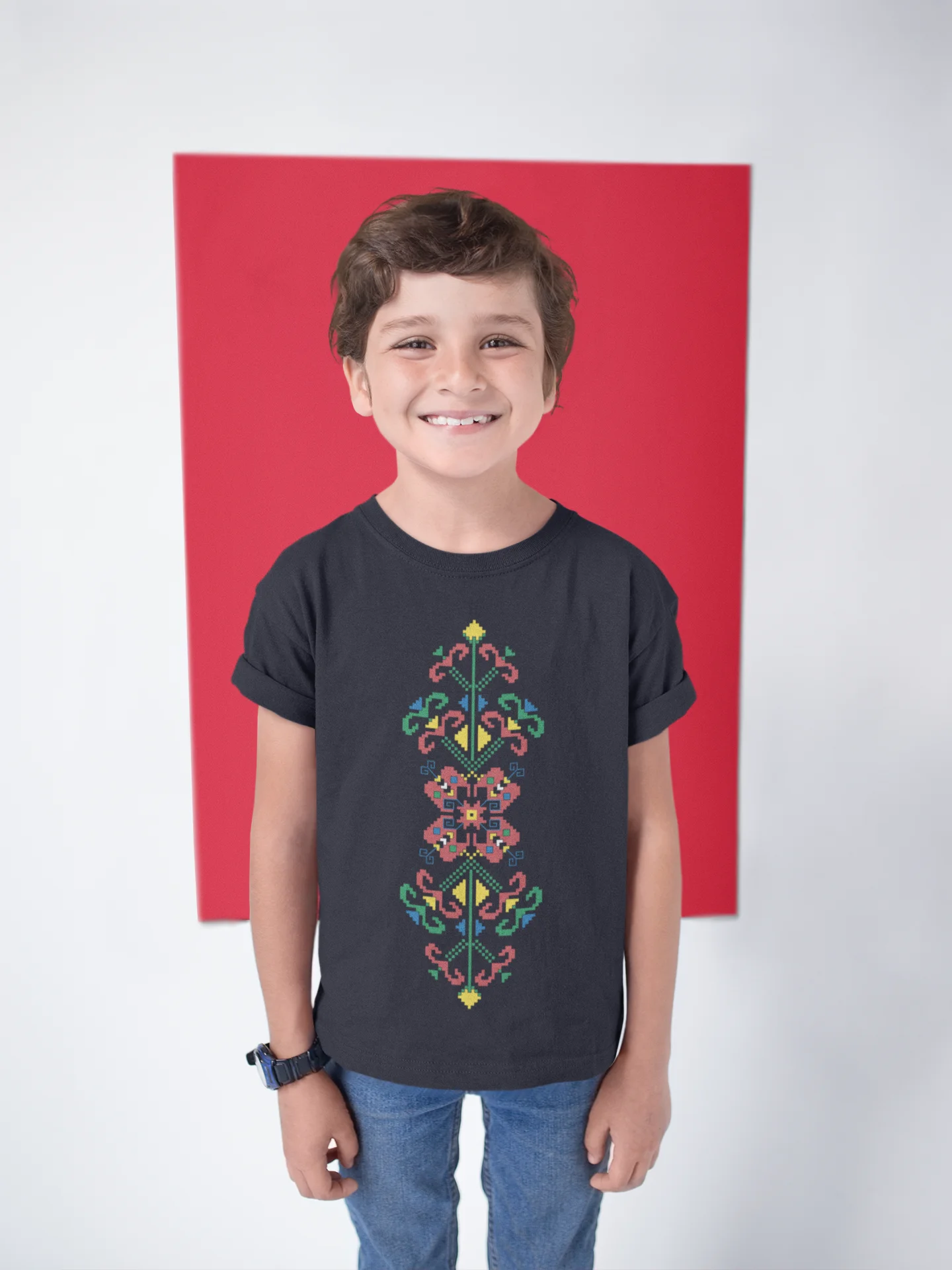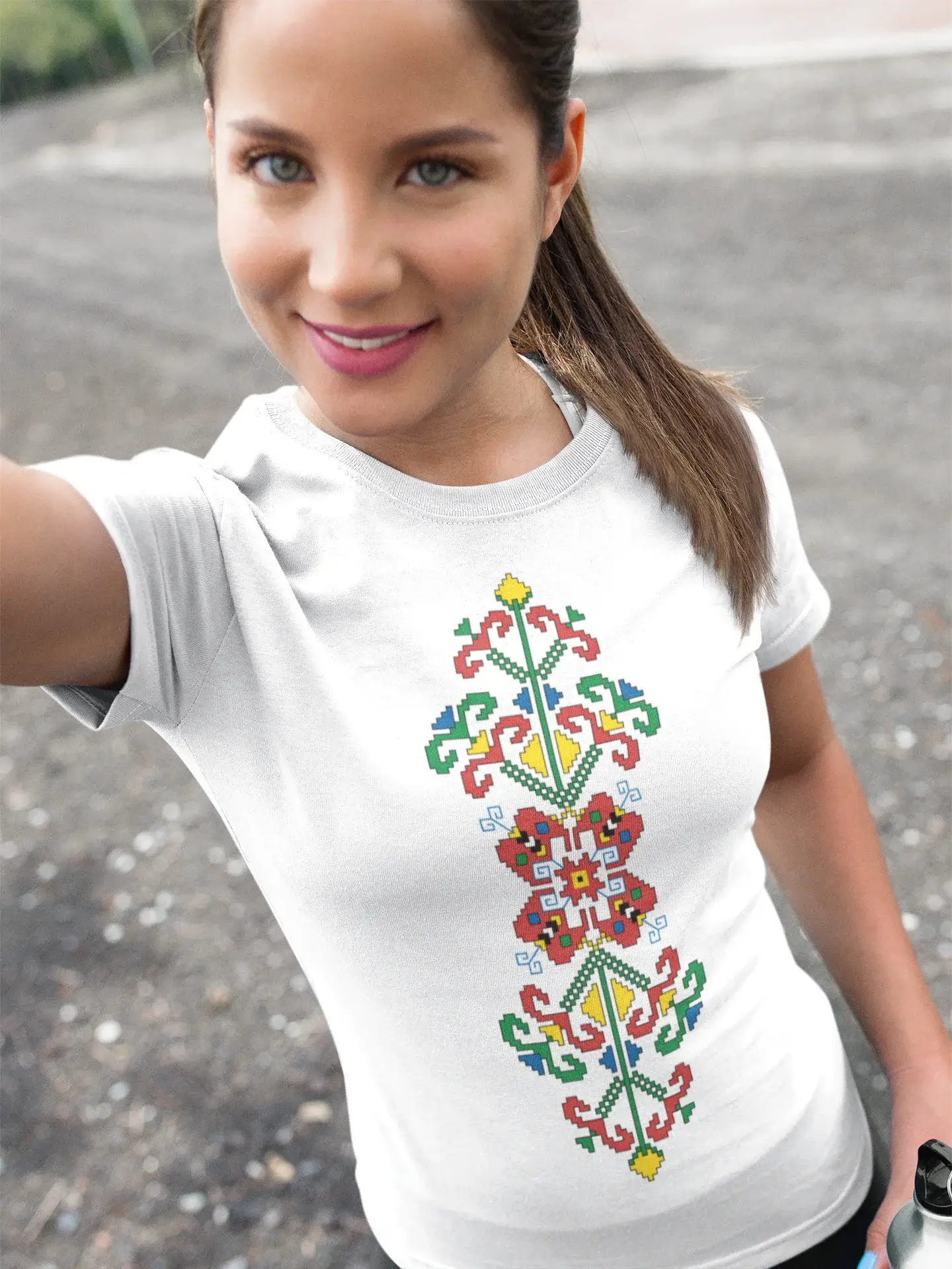 Тениската „Корен и цвят“ пресъздава красотата на българската шевица, вплитайки символи на устойчивост, растеж и връзка с природата. Вдъхновен от корените, които ни крепят, и цветовете, които разцъфтяват, този мотив изразява баланса между миналото и бъдещето, силата на рода и непрекъснатото обновление на живота.