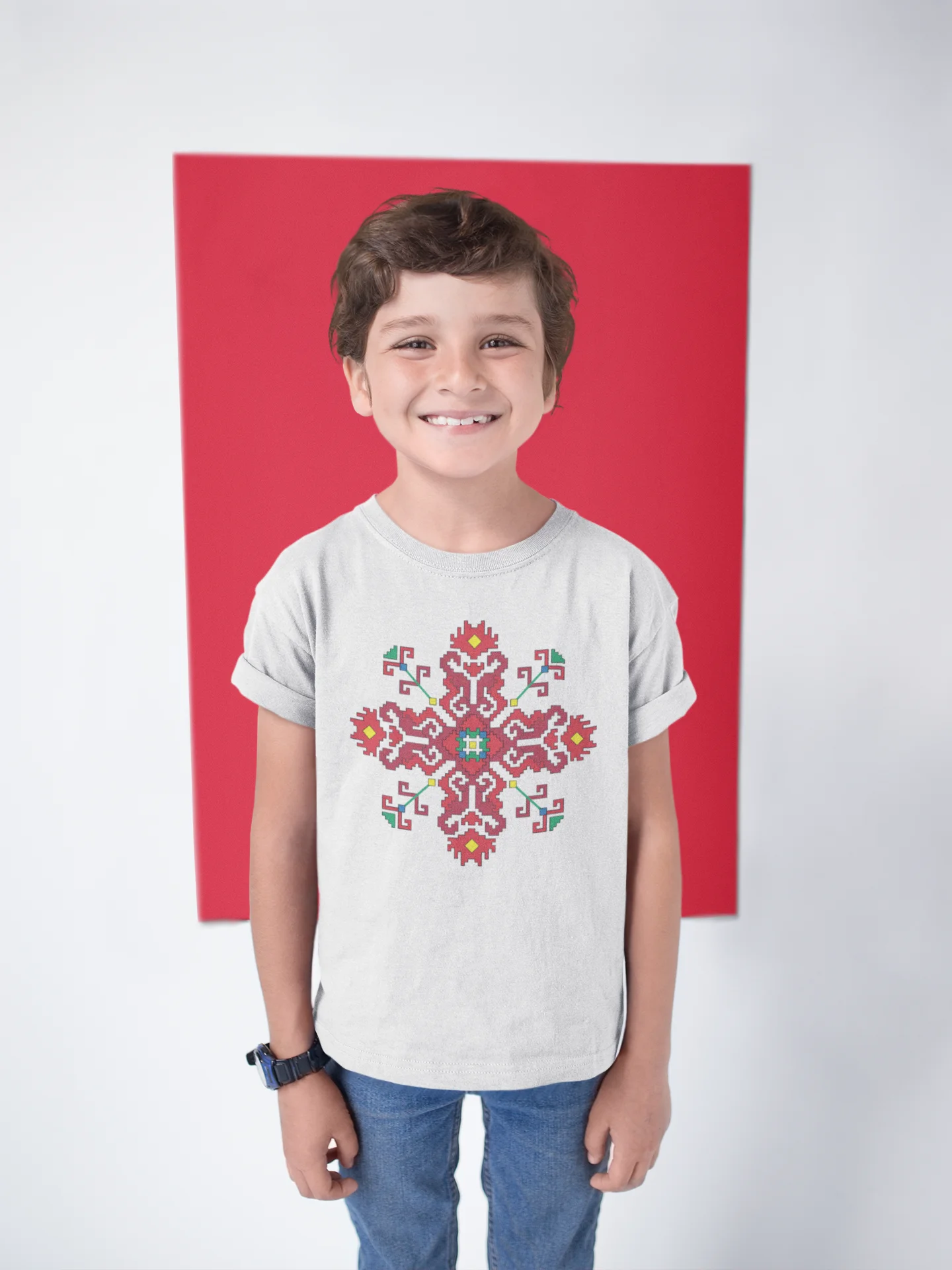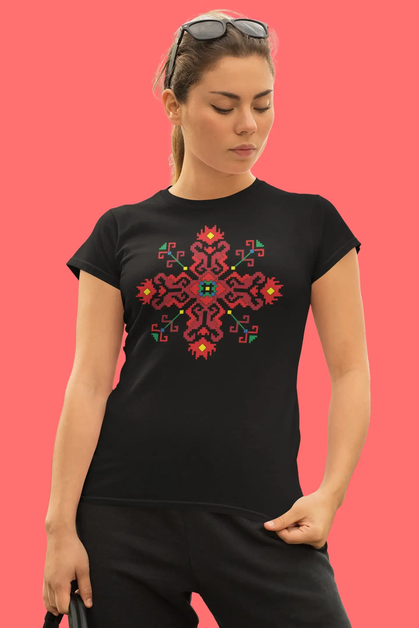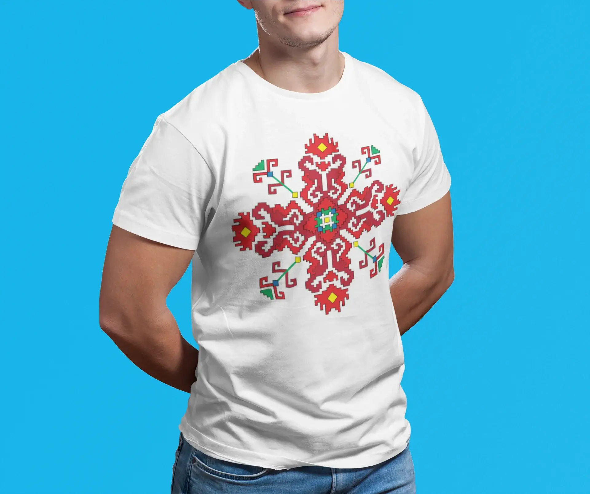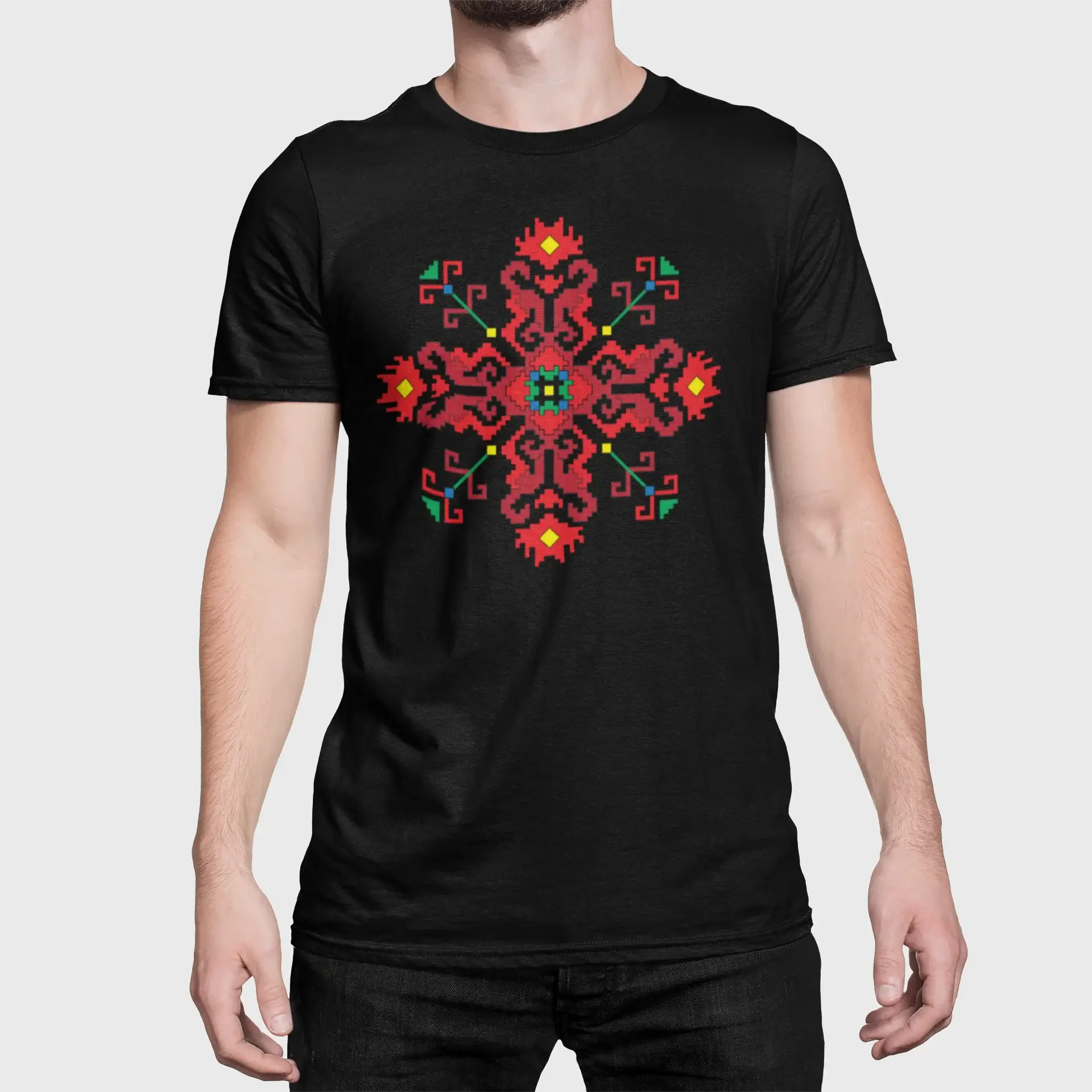 Тази тениска с шевица е вдъхновена от българските традиции и богатото културно наследство на нашия народ. Дизайнът представя огнената символика, която носи послание за сила, енергия и непрекъснатото движение напред. В народните вярвания огънят е не само източник на топлина, но и мощен защитен символ, който прогонва злото и носи късмет.