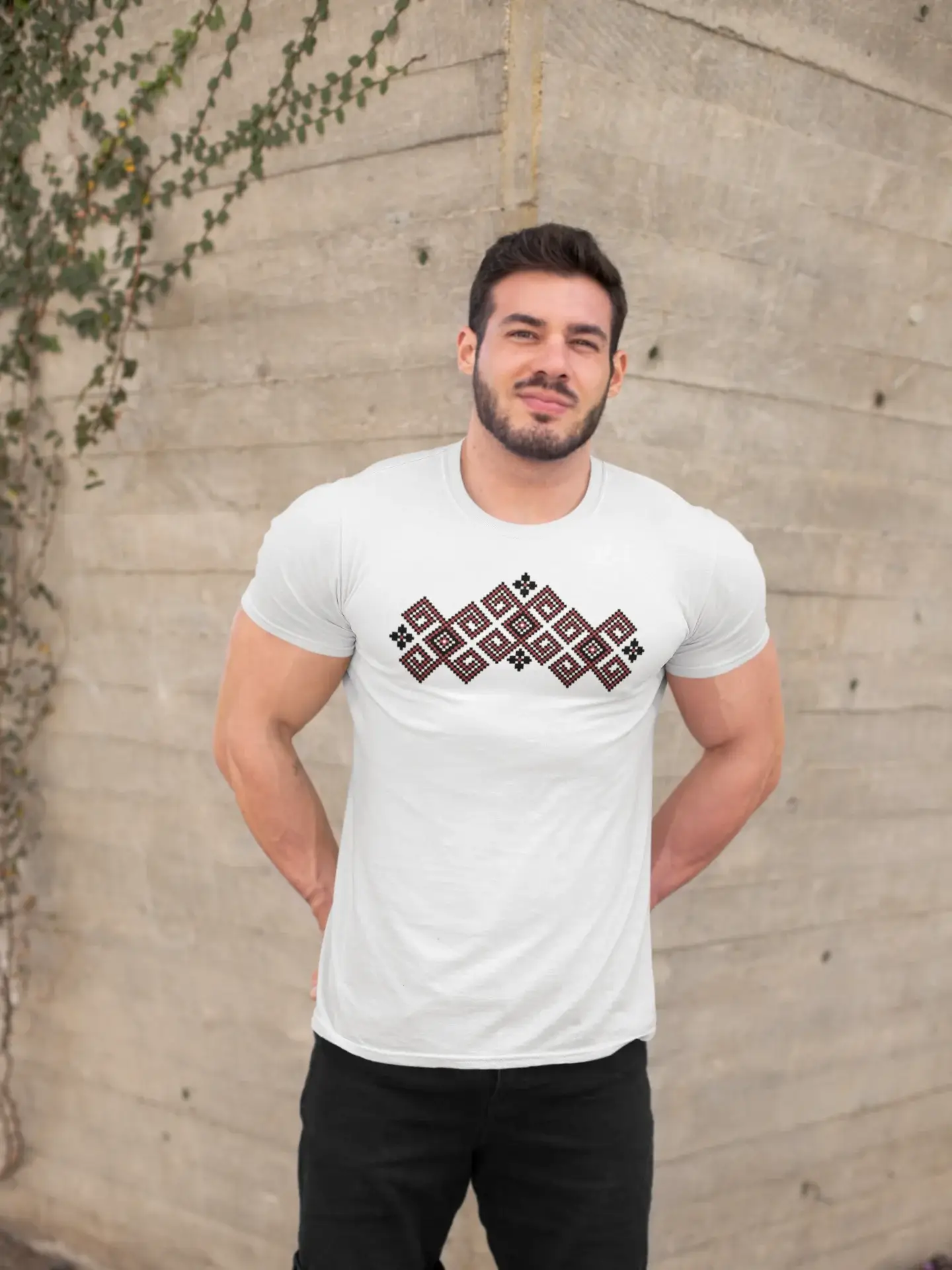 Тениската „Спирала“ е вдъхновена от древните български шевици, където спиралата символизира вечния кръговрат на живота, енергията и духовното израстване. Този геометричен мотив е използван от поколения като знак за хармония, баланс и защита.