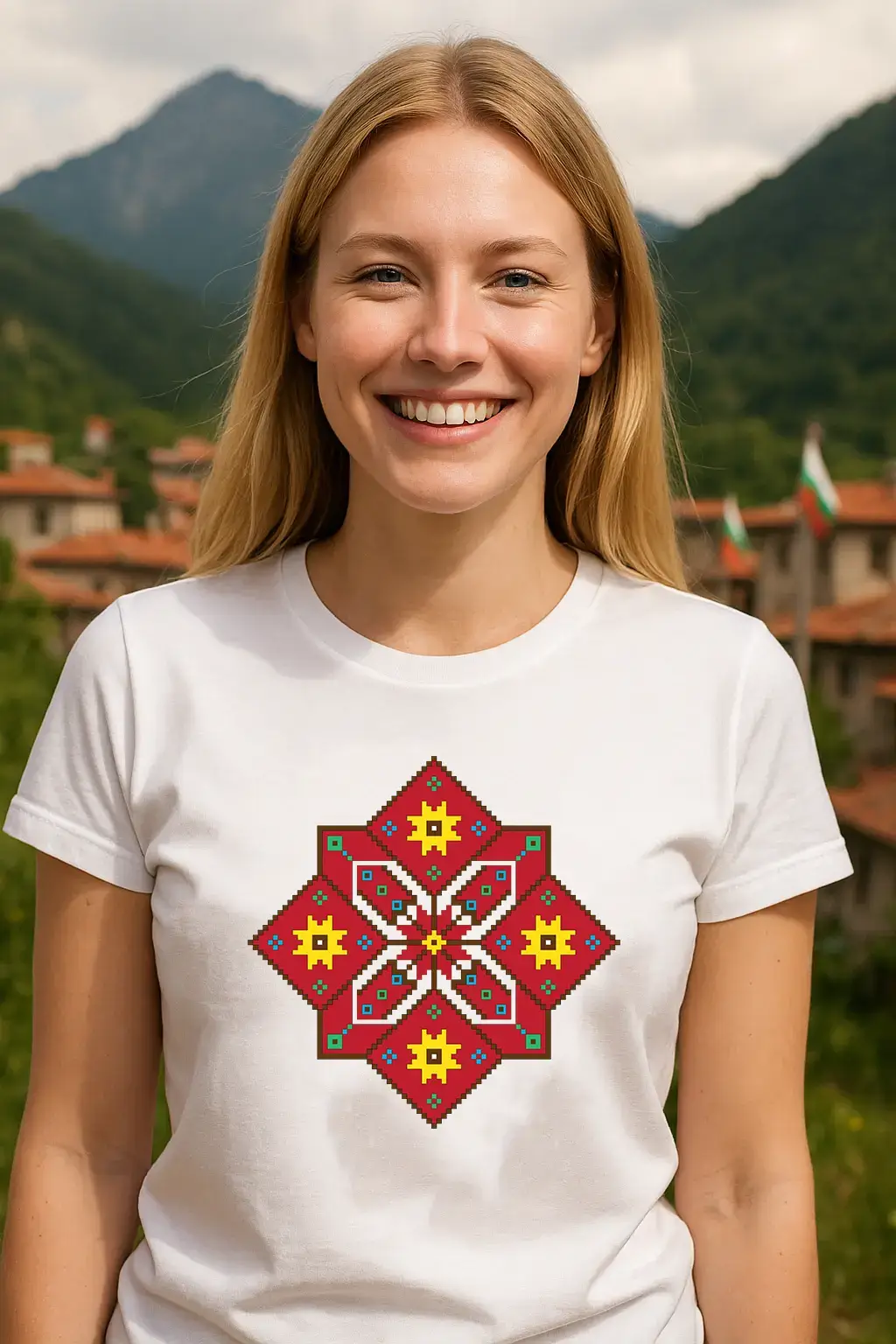 В тази тениска са закодирани столетни послания, които носят в себе си увереност и почит към корените. Всеки детайл е подбран с грижа и уважение към традицията на Средна Западна България.