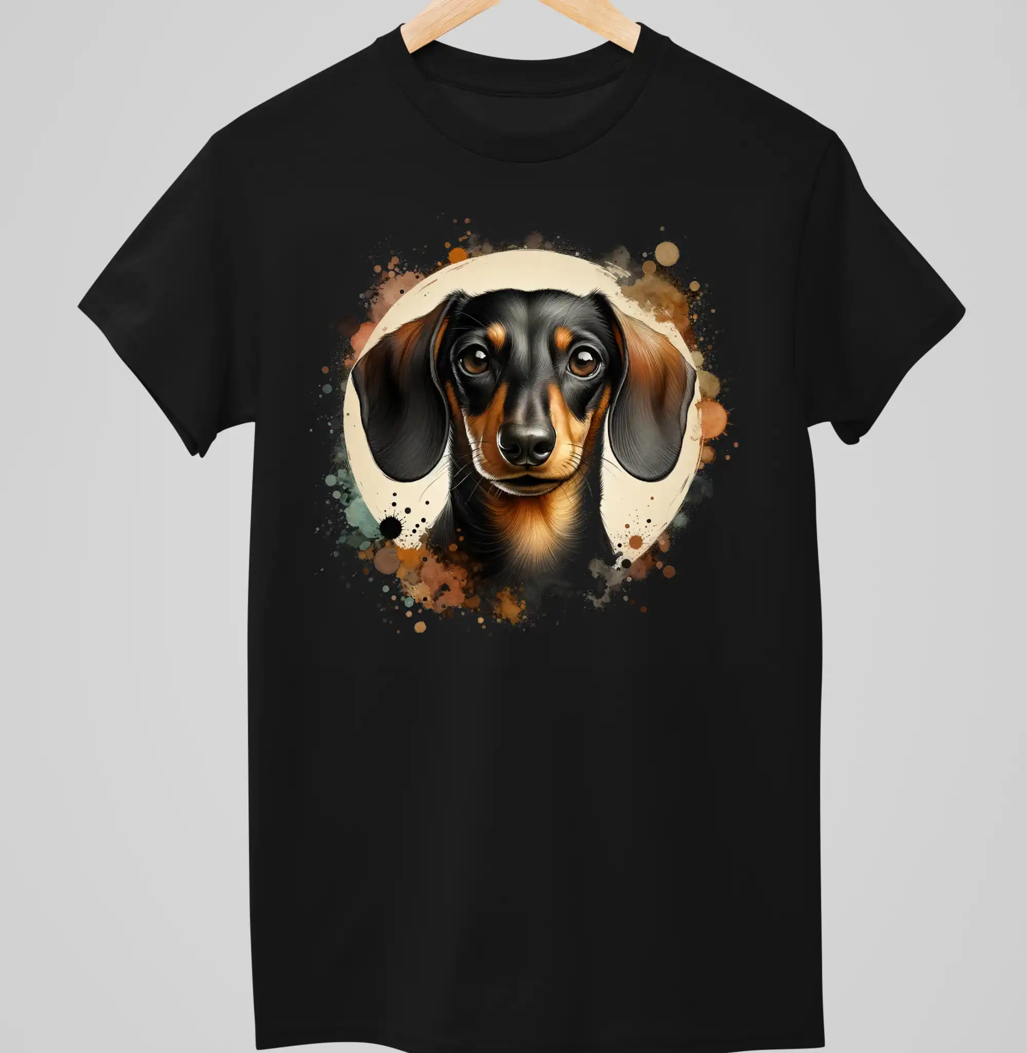 черна тениска дакел 1 – Открийте уникалния си стил с нашата уникална дизайнерска тениска! Идеална за всеки повод!