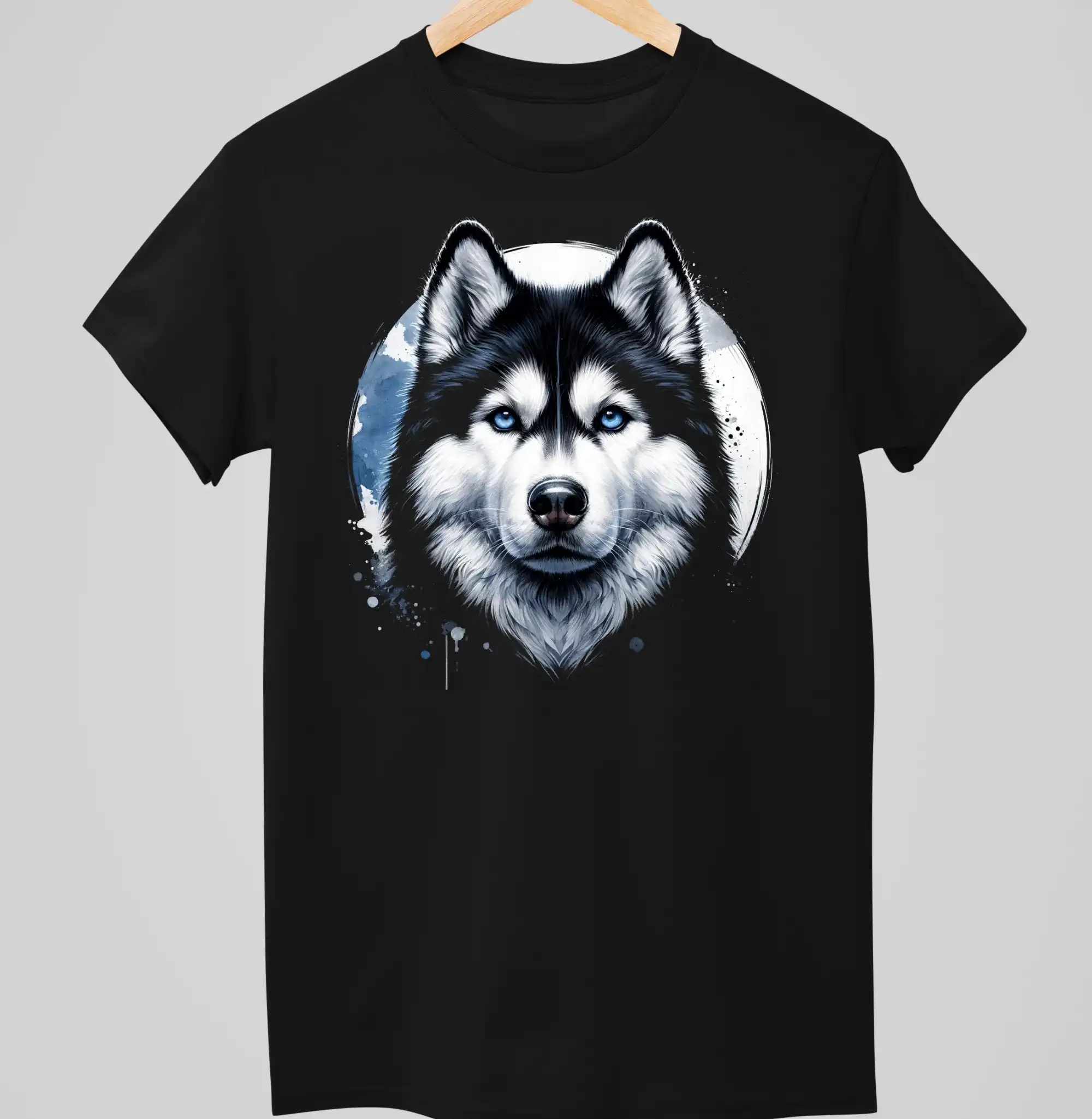 черна тениска хъски 1 – Открийте уникалния си стил с нашата уникална дизайнерска тениска! Идеална за всеки повод!